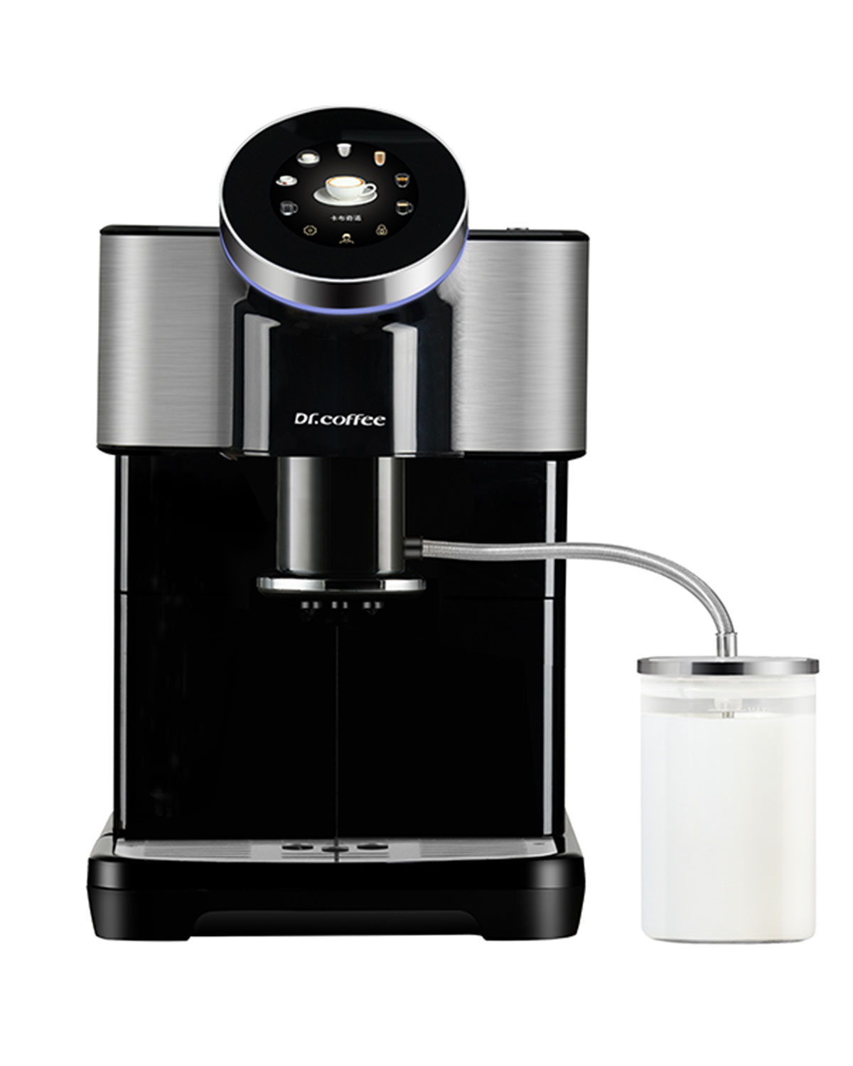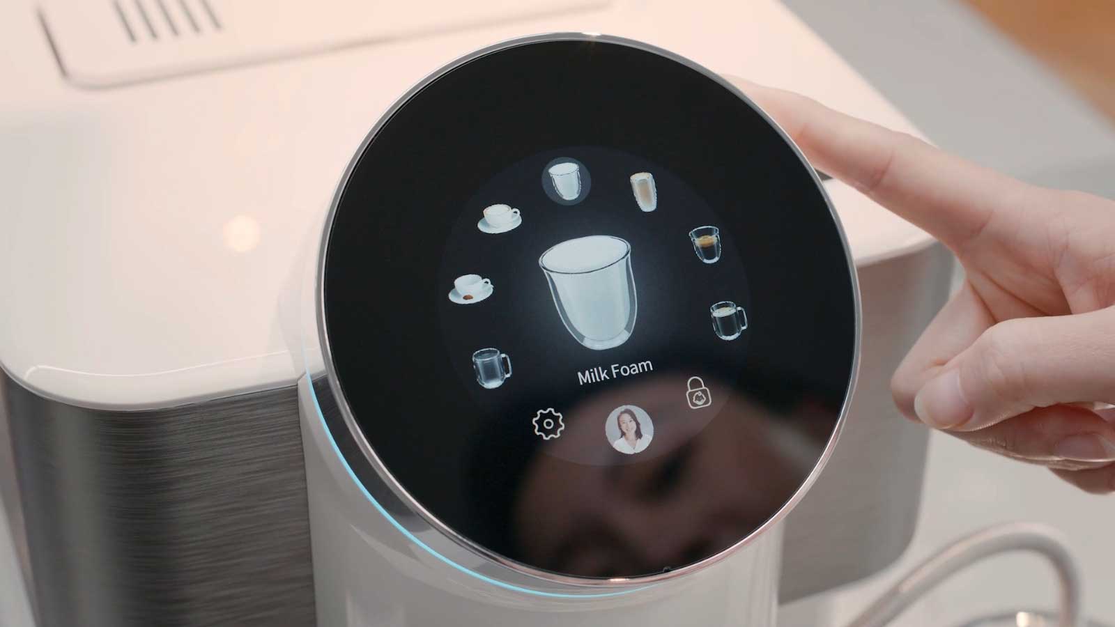 Der Kaffeevollautomat Dr. Coffee H2 verfügt über ein 4-Zoll-Display, auf dem Sie das zuzubereitende Getränk ganz einfach durch Drehen der Lünette auswählen können. Sie können zahlreiche Parameter einstellen, z. B. die Wasser- oder Kaffeemenge. Sie können Ihre eigenen Rezepte einstellen, bis zu 6 verschiedene Getränke für 6 Personen.