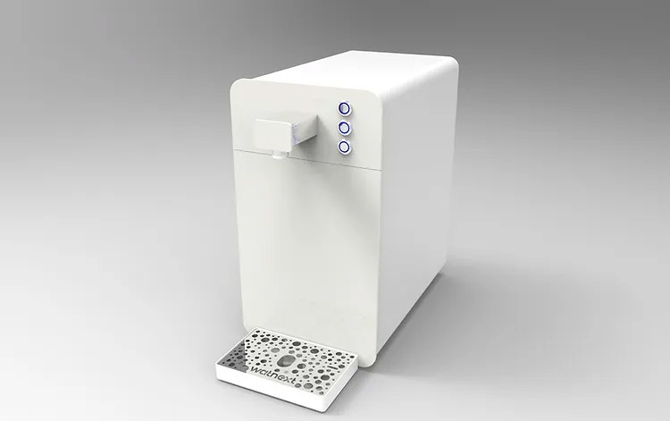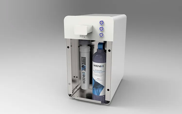 wathome25 Plug&Play ist der Spender der neuesten Generation zur Ausgabe von kaltem/kohlensäurehaltigem/Umgebungswasser für Zuhause, Büro und Arbeitsplätze im Allgemeinen. Entwickelt für die Unterbringung eines Aktivkohlefilters und einer CO2-Zylinder (425 g und 640 g wiederaufladbar; 600 g Einwegartikel) im Inneren des vorderen Fachs, wurde es aufgrund seiner einfachen Installation und Wartung (zum Wechseln des Filters usw.) als Plug&Play-fähig definiert Zylinder). Die Frontplatte aus Methacrylat mit abgerundeten Ecken lässt sich mit einem einfachen Klick lösen. Die Tasten sind blau hinterleuchtet. Obwohl der Spender über das Zubehör verfügt, sind seine Abmessungen klein und das Design ermöglicht die Platzierung in jeder Küche. Er ist in den Standardfarben Schwarz und Weiß erhältlich und verfügt über die patentierte Watnext® Icermetic3-Technologie mit der Option einer UVC-LED an der Ausgabestelle.